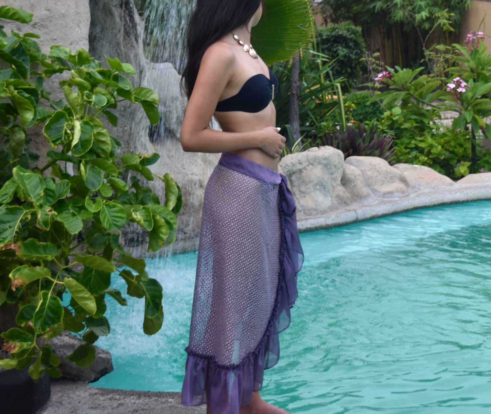 Añade un toque místico y vibrante a tus días de sol con este pareo largo en color morado. Diseñado para la mujer que busca una elegancia relajada, su tela de malla calada revela sutilmente el traje de baño inferior, creando un juego de transparencias muy sensual y a la moda.